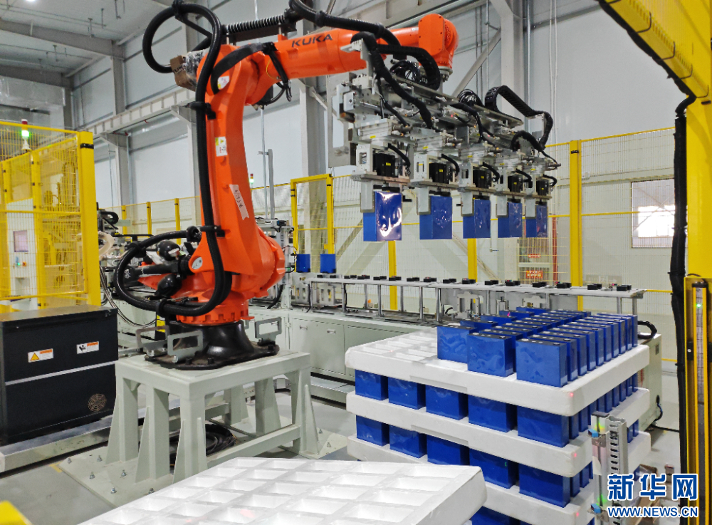 清陶(烏海)能源科技有限公司電池PACK生產(chǎn)線車(chē)間正在聯(lián)調(diào)聯(lián)試。新華網(wǎng)發(fā)(趙暉 攝)
