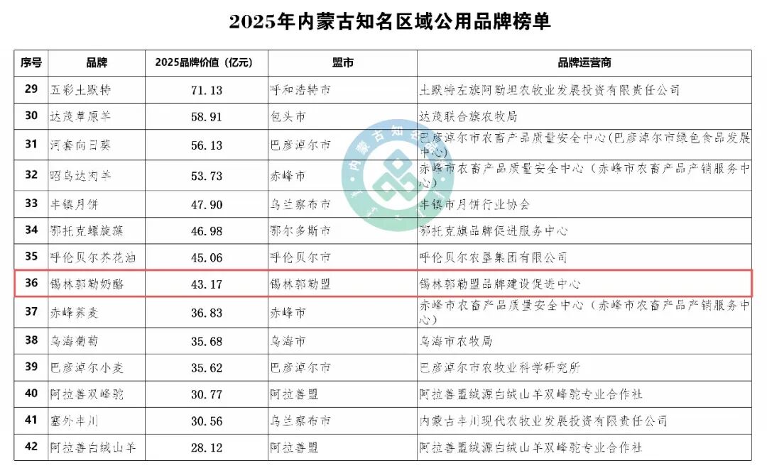 錫林郭勒奶酪品牌價(jià)值達(dá)43.17億元