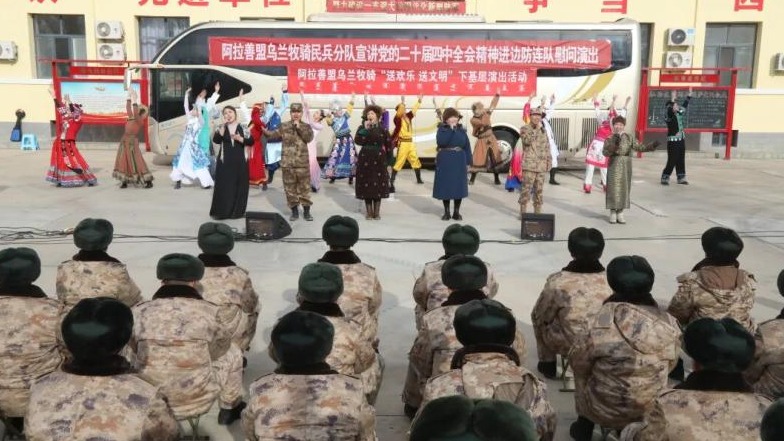 為推動黨的二十屆四中全會精神深入基層、落地生根,連日來,阿拉善盟烏蘭牧騎民兵分隊走進額濟納旗邊防連隊,以文藝演出的形式,讓全會精神浸潤兵心。